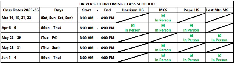 Marietta/Cobb Driver’s Education provides high quality, low cost instruction for teen drivers with the goal of saving lives.