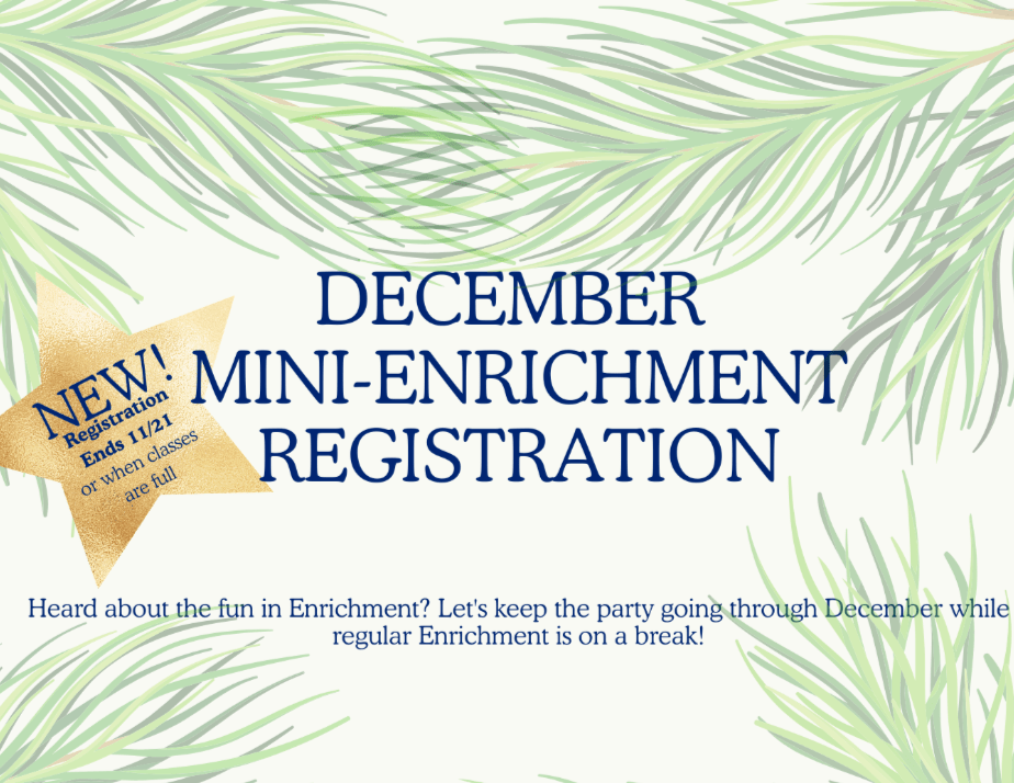 December Mini CampWinter Wonderland GamesTuesdays Dec 2, 9, 163:30-4:30 PMWe’re bringing the energy this December with a 3-week mini camp! Each session is packed with wild, high-energy camp games that get kids moving, laughing, and working together. Games include classics like Sharks and Minnows, Don’t Steal the Bacon, Camouflage, and so many more camp favorites! From silly challenges to exciting competitions, this hour of fun is the perfect way to wrap up the school day and keep the camp spirit alive. This camp is for all abilities! Register Here December Mini CampKnitting (2nd-5th Grades)Wednesdays Dec 3, 10, 173:30-4:30 PM Create a handmade cowl with Ms. Roland.Learn the basics, make something special, and we’ll help you wrap it, too! This is for all levels. All supplies are included. Register Here Spring 2026 Enrichment DatesJanuary 26-May 1 Each class will take place from 3:30 PM - 4:30 PM Please be mindful that there will be no Enrichment during Holiday Breaks or Conference Week.Enrichment CoursesRegistration for Enrichment courses is now open for all of the courses listed below. For more information about each, please look below to see if our courses would be a great fit for your student!Feel free to click on the photos to find out more information about specific courses!Registration will remain open until January 19. Registration will open mid-November SSA SoccerMondays SSA After School Soccer sessions are for ALL players! The sessions will be for all grades boys and girls no matter the skill level. Our sessions are for players who are looking for extra exercise, players who have never played soccer before, players who play soccer recreationally and also players who play at the academy level. If you sign up for our program, your child will have fun, learn the fundamentals of soccer, develop skills in soccer and also learn skills for everyday life too. Register Here Beginners & Advanced ChessMondaysMake the right move for your child this school year! Chess develops your child's reading and math ability, critical and analytical thinking skills, and builds character and self-esteem. But don't tell the kids...they think chess is fun! Our Chess instructors and coaches are not only exceptional chess players themselves, but they have a passion for sharing their knowledge with children. They have years of chess playing experience, tournament experience, and the passion to keep the kids entertained! Register Here Tennis Tuesdays Crunch Time Tennis Kids is always focused on staying safe, learning and having fun while learning the fundamentals of this great sport.Register Here STEAMgineer presents: Pixel & Paint Lab: Where Art and Tech Collide(1st-5th)Tuesdays At Pixel & Paint Lab, we empower kids to explore their creativity through painting, art, coding, robotics, circuits, science, and AI. Every project builds confidence, problem-solving skills, and imagination for the future.Activities include:Painting & ColoringBuilding Art BotsCoding & CircuitsCreating AI-Animated CharactersLED Paper Circuit ArtScience labs and more!Register Here Alliance Theatre: Drama Workshop (K-3rd)Wednesdays Dance, sing, and act your way to becoming a triple threat! Students will learn proper singing techniques and basic choreography while using creative drama techniques to create and explore musical theater. This class is taught by Alliance Theatre. Register Here Spanish (K-2nd)Wednesdays Our teachers provide a fun learning environment where students are given the opportunity to develop basic language. Our goal is to help children gain an enthusiasm and appreciation for learning Spanish as a second language. Each class incorporates games, songs, writing and reading in order to generate and maintain the interest of every child. All-Star SportsWednesdays Each week, students build confidence, coordination, and teamwork while learning the fundamentals of popular sports like basketball, baseball, frisbee, and gaga ball. Our experienced coaches break down the basics in a fun, inclusive environment that keeps kids active and engaged. Whether your child is just getting started or already loves sports, this program supports skill-building, promotes healthy habits, and makes after school a time to look forward to!Register Here Art with Marietta Cobb Museum of ArtThursdays Explore all different kinds of dry and wet media like pencil, charcoal, conte crayon, pastels, watercolor, acrylics, and more! In this course, we will discuss the history behind these different mediums, and understand their relevance and purpose today. Your child will come out of this class with a strong understanding of each medium along with a series of warmups and completed artworks in their sketchbooks! Register Here PickleballThursdaysThe World’s fastest-growing sport is now a class your child will love! Pickleball has been described as a combination of tennis, badminton & ping pong. The game is easy to learn and tons of fun! Register Here CheerFridaysCheer Your Heart Out GA is cheerleading for everyone! Students will focus on the fundamentals of cheerleading including cheers, dance routines, jumps and stunts.This club is open to all grades(k-5), girls and boys! LEGO® "Stop-Motion Film Festival Academy" Fridays The Builder Bunch LEGO® "Stop-Motion Film Festival Academy" After School Enrichment Program will take your children through a journey in film making. During this program your child will learn how to bring a story from idea to life with characters, scenes, storylines and a well-constructed plot. For participation your child will earn a Stop-Motion Film Festival Academy Badge.Builder Bunch programs combine to provide a platform for kids to be inspired to explore their imagination, all the while having FUN. We are on a mission to provide a platform for kids to LEARN, CREATE and EXPLORE their various interests! Pick-Up Information All students will go straight to their designated pick-up spot at their school once they are dismissed from 
